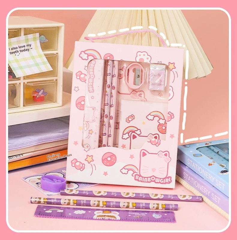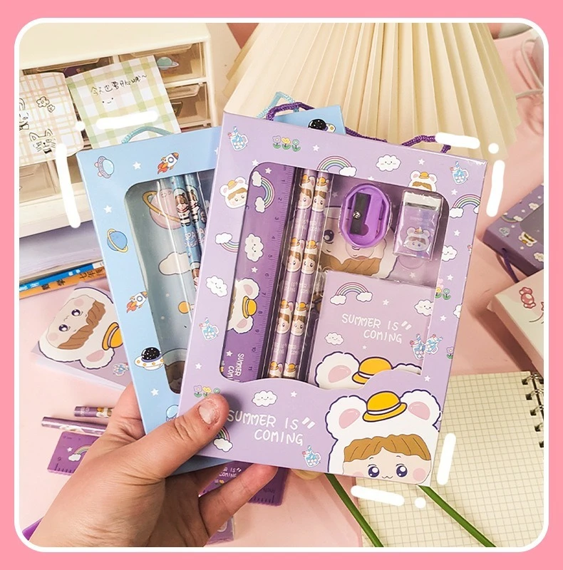 New Cartoon Stationery Set Including Pencil Notebook Ruler Eraser Pencil Sharpener Student School Supplies Stationery Gifts