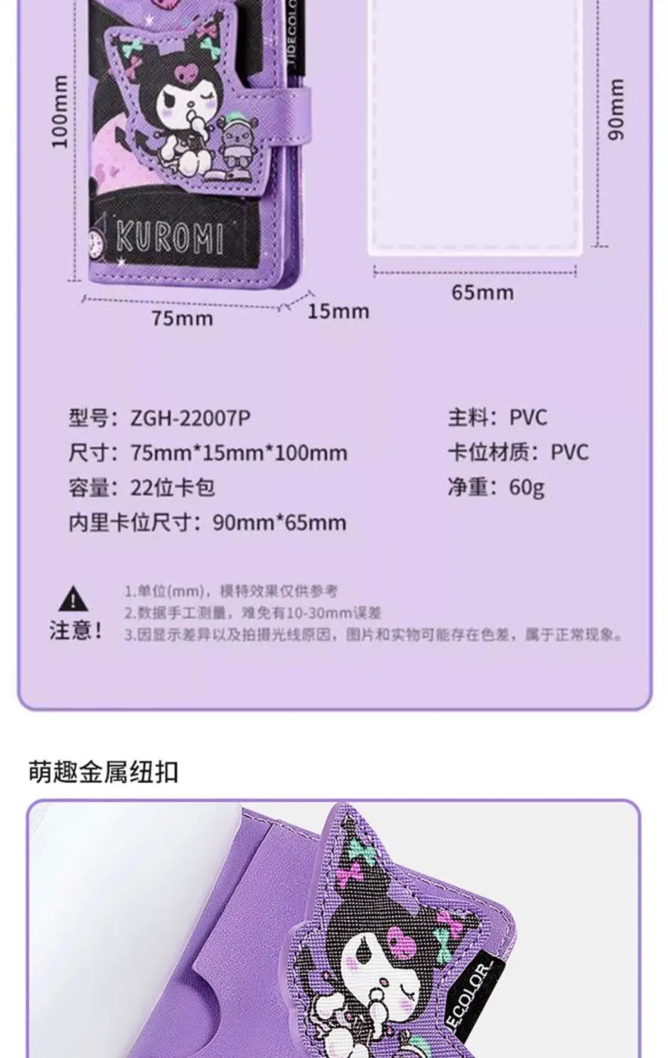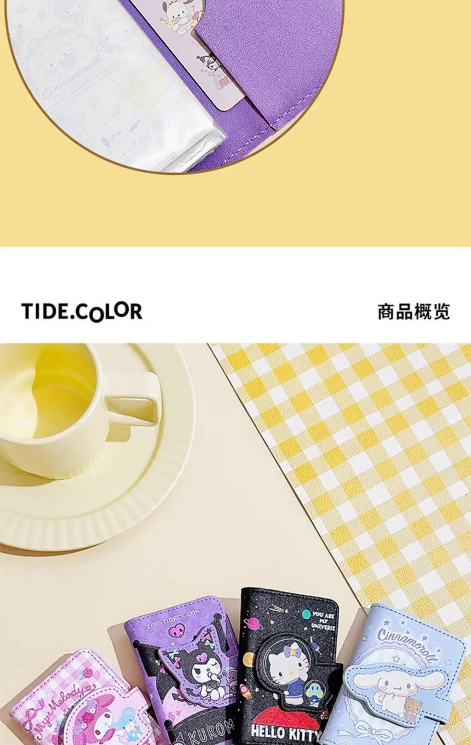 Sanrio Hello Kitty Card Bag Cinnamoroll Kuromi Melody Coin Wallet Bank Cards Document Storage Kawaii Pu Multifunctional Purse