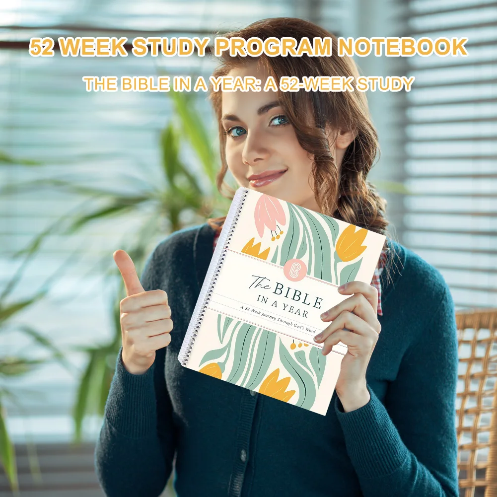 The Bible in A Year Study Through Gods Word Planner Leak-Proof Womens Bible Study Plan 52 Week Study Guide Book for Friend Gift